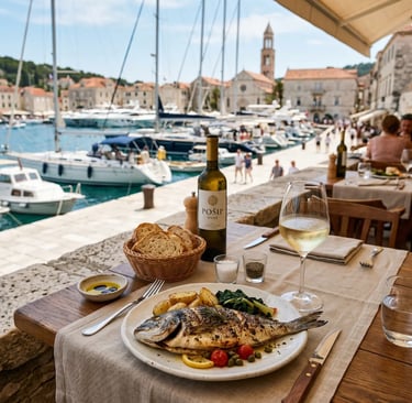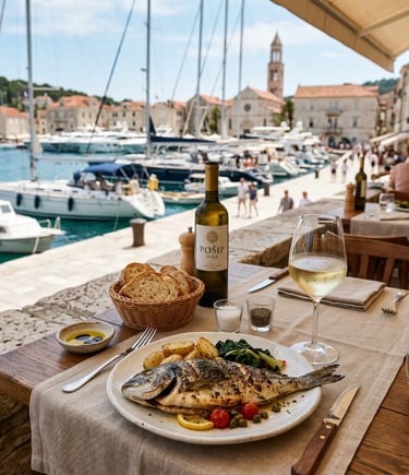 We had lunch on Hvar town's harbor: grilled fish, olive oil that tasted like a hillside, a glass of pošip that the waiter poured without asking, the way they do when they've decided you're alright. I walked the marble streets for an hour. The yachts in the harbor were absurd. The locals didn't look up at them. I liked that.