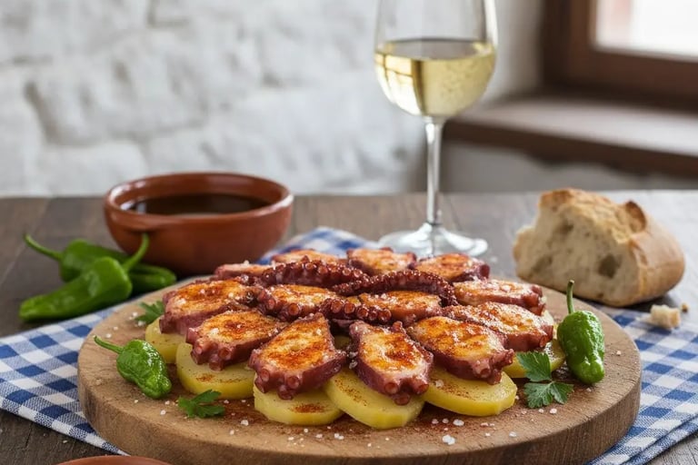 Food is integral to the Camino experience. Begin mornings with café con leche and tostada con tomate. Lunches on the trail are often rustic picnics — bread, cheese, and chorizo — beneath shady olive trees. Dinners invite community: long tables, weary feet, and fresh regional specialties like pulpo a la gallega or traditional Galician soup.