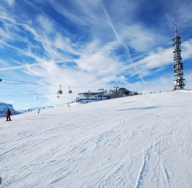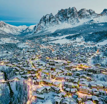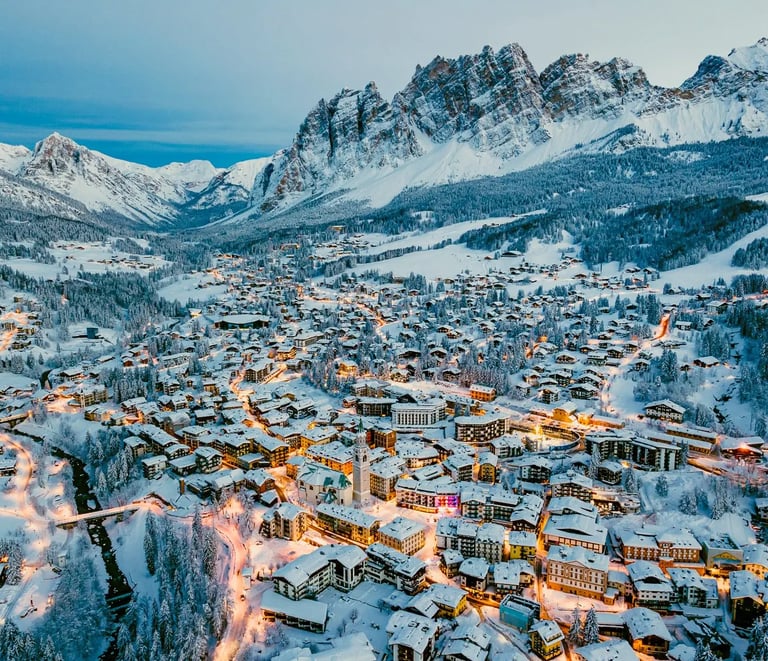 Hollywood’s favorite (think The Pink Panther), Cortina oozes “Dolce Vita” elegance with its pastel buildings and designer boutiques. The 120km of slopes include Olympic-standard runs, while the Freccia nel Cielo cable car whisks skiers to 3,269m for sapphire-sky views. Après-ski here means Bellini cocktails at Hotel Cristallo and jazz nights at Ristorante Tivoli.