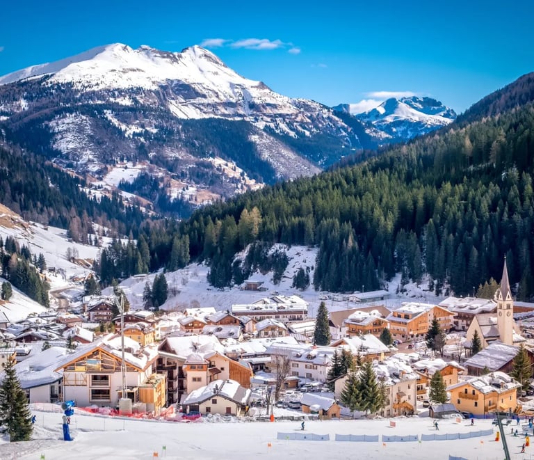 Why Americans Love It: Tucked between the Sella and Marmolada ranges, Arabba offers 62km of slopes and easy access to the Sella Ronda. The Porta Vescovo cable car opens up expert terrain like the Marmolada Glacier. Après-ski means hearty meals at Rifugio Pradat and cozy lodges with wood-burning stoves.